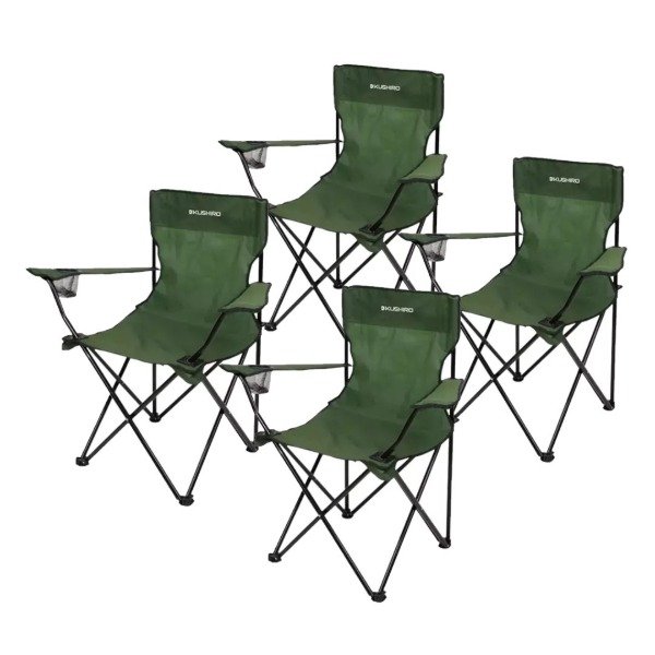 PRECIO por 4 SILLAS de camping, playera, aire libre plegable director Medidas: 50 cm × 50 cm × 80 cm Material: Estructura de acero con espesor de 0,7 mm/0,9 mm y diámetro 16 mm Tela poliéster oxford reforzada 600 D Portavaso Incluye bolso de transporte Peso máximo soportado: 120 kg Origen: China Garantía de fábrica: 3 meses